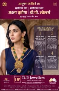 डी.पी.ज्वेलर्स के  अनिल कटारिया ने बताया, ‘‘मान्यताओं के अनुसार अक्षय तृतीया पर आभूषण खरीदी समृद्धि का प्रतीक माना जाता है और इस अटूट परंपरा को आगे बढ़ाते हुए ग्राहक बड़ी संख्या में आभूषण व सिक्कों की खरीदी करते हैं| हमने ग्राहकों के समक्ष खास आधुनिक पैटर्न के साथ ही पारंपरिक व डिजाइनर आभूषण पेश किए हैं| डीपी ज्वेलर्स हमेशा से ग्राहकों की पसंद और उनके फायदे को प्राथमिकता देता आया है। हर त्यौहार पर उत्सव की खुशियों को कैसे डबल किया जाए इसी उद्देश्य के साथ डीपी ज्वेलर्स हमेशा प्रयासरत रहता है। इसी का परिणाम है कि लाखों परिवार कई पीढ़ियों से हर ख़ुशी और उत्सव पर आभूषणों की खरीदी के लिए डीपी ज्वेलर्स पर ही भरोसा करते हैं।