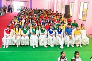 शबद कीर्तन प्रीत कौर भामरा ने व मां सरस्वती की आराधना नीलिमा चौधरी व रुचि चौहान ने प्रस्तुत की । बच्चों ने स्वागत समूह गीत प्रस्तुत किया । अतिथि डीआईजी निमिष अगरवाल, अवतारसिंघ सलूजा व कश्मीर सिंह सोढ़ी का स्वागत समिति अध्यक्ष सरदार गुरनाम सिंह डंग ,उपाध्यक्ष हरजीत चावला सचिव अजीत छाबड़ा, कोषाध्यक्ष देवेंद्र सिंह वाधवा, सहसचिव हरजीत सलूजा, प्रवक्ता सुरेन्द्र सिह भामरा, समिति सदस्य गगनदीप सिंह डंग, धर्मेंद्र गुरुदत्ता, गुरविंदर खालसा, गुरमीत सिंह गुरुदत्ता, प्राचार्य डॉ रेखा शास्त्री, प्रधान अध्यापिका सरल माहेश्वरी, कविता कुंवर , समिति के अमरपाल वाधवा आदि ने किया। समिति अध्यक्ष सरदार गुरनाम सिंह ने कहा कि बच्चों को संवारने में शिक्षकों का बहुत बड़ा त्याग है शिक्षक ही ऐसा व्यक्ति है जो अपने शिष्यों को अपने से ऊपर जाता देखकर प्रसन्न होता है खेल को हमेशा खेल की भावना से खेलना चाहिए अगर किसी खेल में हार मिलती है तो इसे सकारात्मक रूप में लेना चाहिए की हो सकता हो ईश्वर ने आपको इससे बड़ी जीत के लिए तैयार किया हो उन्होंने मोबाइल के दुष्प्रभावों से अवगत करवाते हुए कहा कि विद्यार्थियों को मोबाइल का उपयोग केवल शैक्षिक कार्य के लिए ही करना चाहिए ।