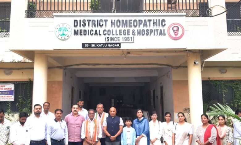 डिस्ट्रीक्ट होम्योपैथिक मेडिकल कॉलेज, रतलाम पर आयोजित समारोह में संस्था चेयरमैन एवं लेप्रोस्कोपिक सर्जन डॉ. अभिजीत देशमुख डिस्ट्रीक्ट होम्योपैथिक मेडिकल कॉलेज के प्राचार्य डॉ. भरत पटेल एवं संस्था संचालक नीरज त्रिवेदी मंचासीन थे।
