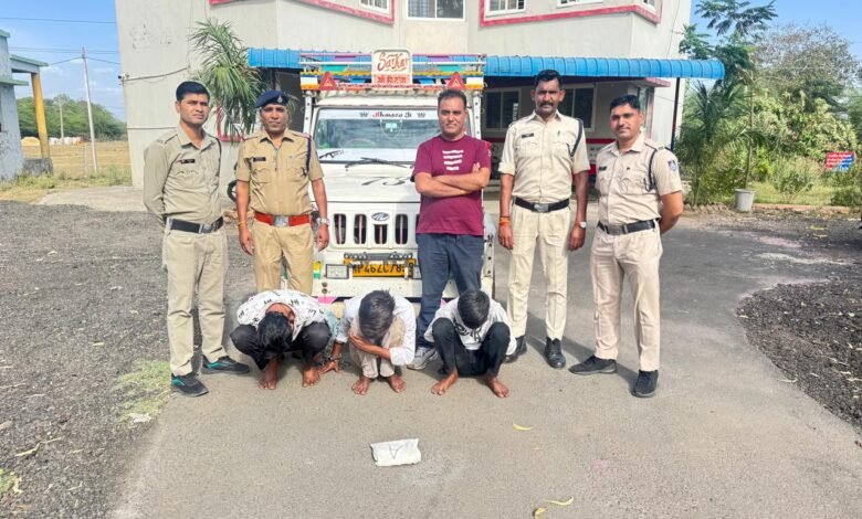 *घटना का विवरण –* दिनांक 29.03.2026 को रात्रि में पुलिस को मुखबिर से सूचना प्राप्त हुई कि एक बोलेरो पिकअप वाहन रजिस्ट्रेशन नम्बर MP46ZC7839 से तीन व्यक्ति MD ड्रग्स लेकर मंदसौर तरफ से आ रहे है । सूचना पर माननखेड़ा पुलिस चौकी के सामने फोरलेन रोड़ पर घेराबन्दी कर एनडीपीएस एक्ट के प्रावधानो का पालन करते हुए प्रभावी कार्यवाही कर बोलेरो पिकअप वाहन मे सवार तीन आरोपी- 01 – सुमित पिता जीवनदास बैरागी उम्र 20 साल निवासी किला रोड मन्दसौर, 02 – प्रकाश पिता भेरूलाल गुर्जर उम्र 19 साल निवासी खेडा थाना नाहरगढ जिला मन्दसौर, 03 – रिहान पिता अरबाज खान उम्र 19 साल निवासी अभिनन्दन कालोनी मन्दसौर के कब्जे से 500 ग्राम MD ड्रग्स जप्त कर तीनो आरोपियो को गिरफ्तार किया । गिरफ्तार आरोपियो से जप्तशुदा MD ड्रग्स के संबंध मे पुछताछ की जा रही है ।